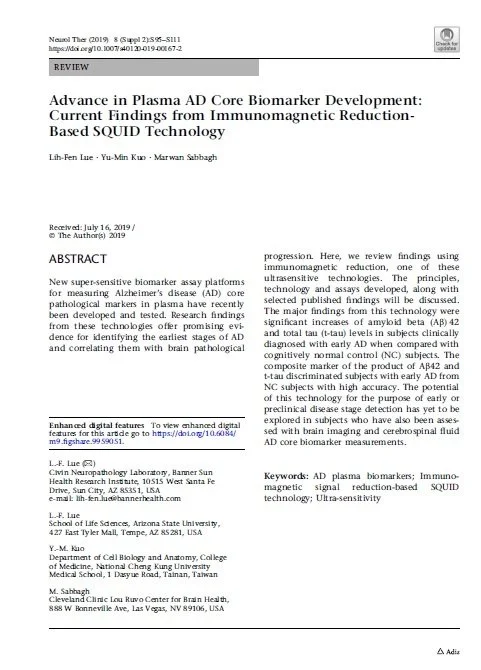 Yiran Gan 4/4/25 Yiran Gan 4/4/25 Plasma amyloid assay as a pre-screening tool for amyloid positron emission tomography imaging in early stage Alzheimer’s disease Read More Yiran Gan 4/4/25 Yiran Gan 4/4/25 Advance in Plasma AD Core Biomarker Development: Current Findings from Immunomagnetic Reduction-Based SQUID Technology Read More Yiran Gan 4/4/25 Yiran Gan 4/4/25 Combined Assessment of Serum Alpha-Synuclein and Rab35 is a Better Biomarker for Parkinson's Disease Read More Yiran Gan 4/4/25 Yiran Gan 4/4/25 Associations between Plasma Biomarkers and Cognition in Patients with Alzheimer’s Disease and Amnestic Mild Cognitive Impairment: A Cross-Sectional and Longitudinal Study Read More Yiran Gan 4/4/25 Yiran Gan 4/4/25 Plasma pS129-α-Synuclein Is a Surrogate Biofluid Marker of Motor Severity and Progression in Parkinson’s Disease Read More Yiran Gan 4/4/25 Yiran Gan 4/4/25 Plasma Aβ42 and Total Tau Predict Cognitive Decline in Amnestic Mild Cognitive Impairment Read More Yiran Gan 4/4/25 Yiran Gan 4/4/25 Age-Dependent Relationship Between Plasma Aβ40 and Aβ42 and Total Tau Levels in Cognitively Normal Subjects Read More Yiran Gan 4/4/25 Yiran Gan 4/4/25 Plasma Amyloid Beta and Tau Levels Are Predictors of Post-stroke Cognitive Impairment: A Longitudinal Study Read More Yiran Gan 4/4/25 Yiran Gan 4/4/25 Long-Term Storage Effects on Stability of Aβ1–40, Aβ1–42, and Total Tau Proteins in Human Plasma Samples Measured with Immunomagnetic Reduction Assays Read More Yiran Gan 4/4/25 Yiran Gan 4/4/25 Clinical application of immunomagnetic reduction for quantitative analysis of beta-subunit of human chorionic gonadotropin in blastocyst culture media to differentiate embryo quality Read More Newer Posts Older Posts