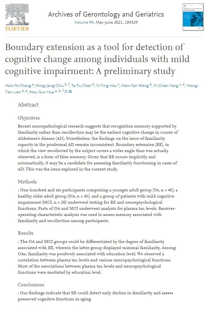 Yiran Gan 4/5/25 Yiran Gan 4/5/25 Boundary extension as a tool for detection of cognitive change among individuals with mild cognitive impairment: A preliminary study Read More