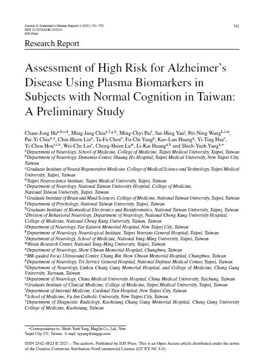 Yiran Gan 4/5/25 Yiran Gan 4/5/25 Assessment of High Risk for Alzheimer’s Disease Using Plasma Biomarkers in Subjects with Normal Cognition in Taiwan: A Preliminary Study Read More
