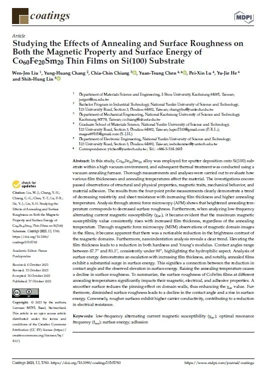 Yiran Gan 4/8/25 Yiran Gan 4/8/25 Thickness, Annealing, and Surface Roughness Effect on Magnetic and Significant Properties of Co40Fe40B10Dy10 Thin Films Read More