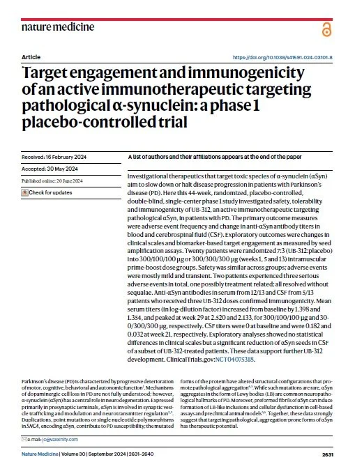 Yiran Gan 4/8/25 Yiran Gan 4/8/25 Target engagement and immunogenicity of an active immunotherapeutic targeting pathological α-synuclein: a phase 1 placebo-controlled trial Read More