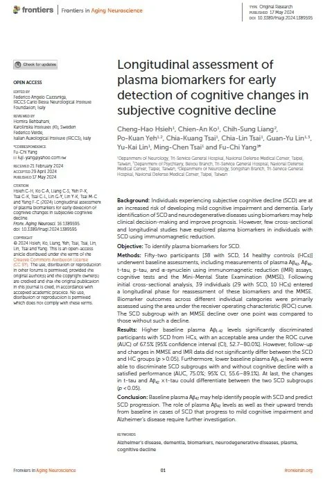 Yiran Gan 4/8/25 Yiran Gan 4/8/25 Longitudinal assessment of plasma biomarkers for early detection of cognitive changes in subjective cognitive decline Read More